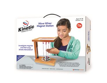 Cool oscillation station makes unique kinetic experiments possible! Features a full-color, 40-page teacher's guide with lesson plans and photo-illustrated experiments to investigate magnets and their kinetic interactions. Make iron filings dance, propel steel balls inside the viewing tray, create a magnet painting (STEAM), and dangle and oscillate magnet wires upside down! Great for demonstration or up to 4 small groups in classroom labs (grades 3 - 8), STEM programs, science fairs, maker spaces, and more. Includes 16 magnet wires, 48 disc weights, 5 base plates, 4 activation rings, 2 viewing trays, tube of iron filings, tube of steel balls, grid paper, measuring spoon, 4 activity booklets, and 40-page teacher's guide. Station measures approximately 10.19" W x 4.75" D x 11.81" H. Conduct NGSS-aligned experiments that explore: