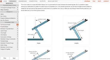 Begins with Research! In the research section, students begin by exploring all the theory and concept background they will need to proceed with the activity. This section includes background text with plenty of interactive activities, tools and tutorials to ensure students are well prepared for the remaining sections. Next, students move on to the Design section. Engineers combine scientific concepts and theories with reality using tools to visualize their designs in 3D. In this section, students use the custom, built-in CAD system to create 3D models on screen and quickly choose between a variety of components to improve their designs. Then, in the Analysis section, students work with a number of built-in tools to see how well their designs stand up to the scientific principles explored in the Research section. Creating the models is fun and exciting, but won’t mean much if not supported by science.