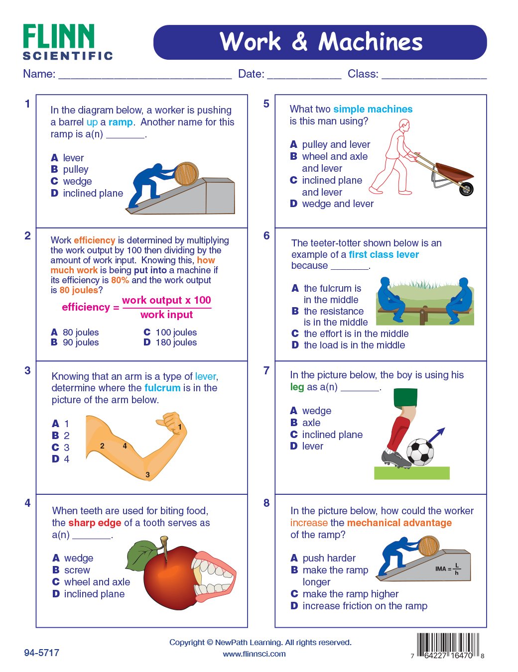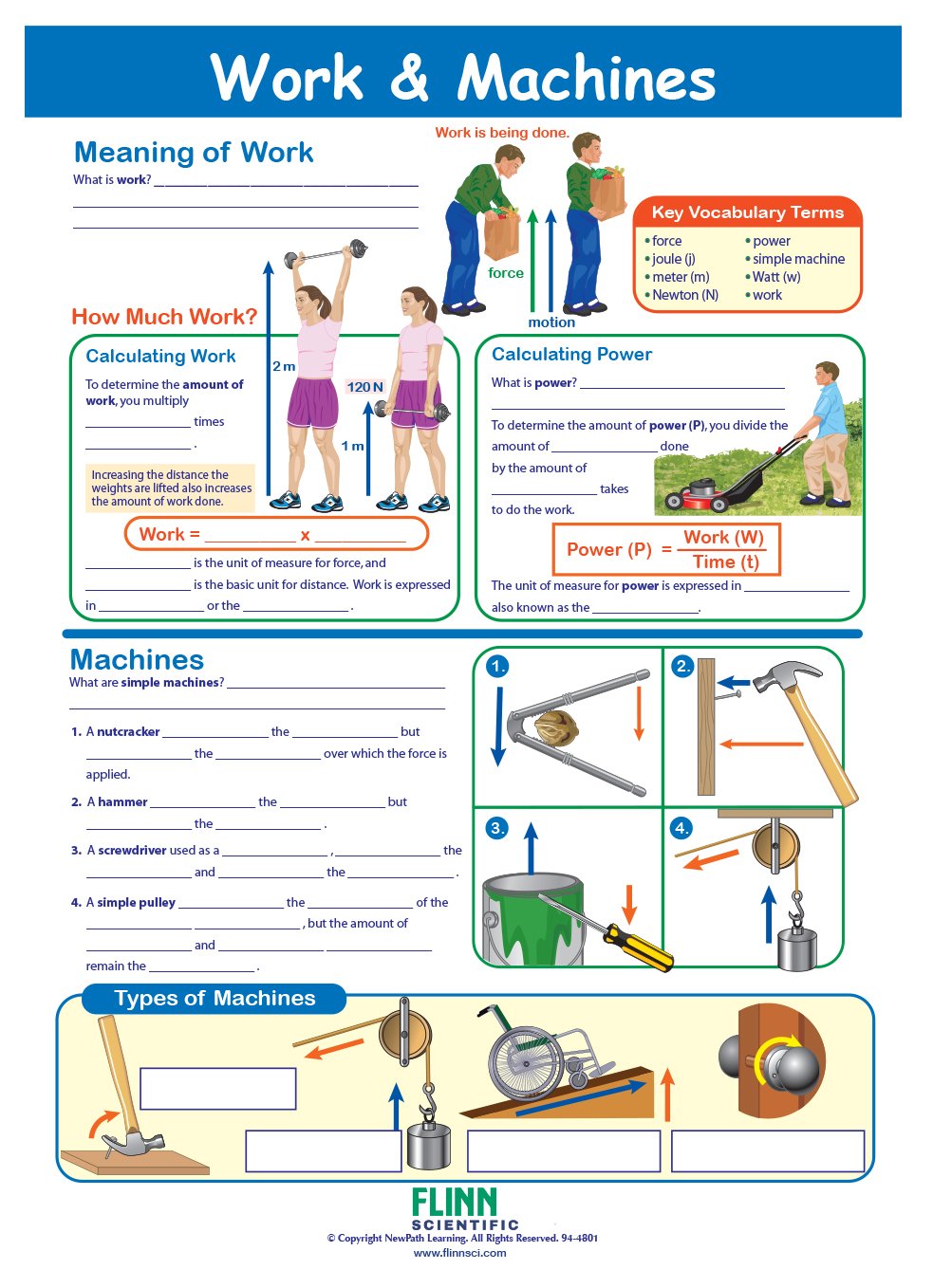 Work & Machines Visual Learning Guide provides comprehensive coverage. Each 11" x 17" laminated Write-On/Wipe-Off guide includes four panels of helpful information to engage students in the study of this topic.